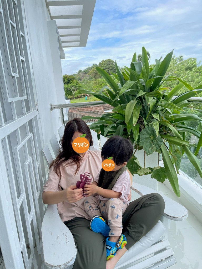 息子、泣いて駄々をこねていますね。これは、奥に有刺鉄線が張ってあって、息子が鉄線に向かって走っていったんですよ。こわっ。急いで止めるためにこんなことに。息子の手には枝。床には乱雑にゴミや折れた枝。わかりますか、ドミニカ共和国って、なんか一歳児には細かい危険が多いです!!発展途上国はやはり子連れ旅行にはハードモード。